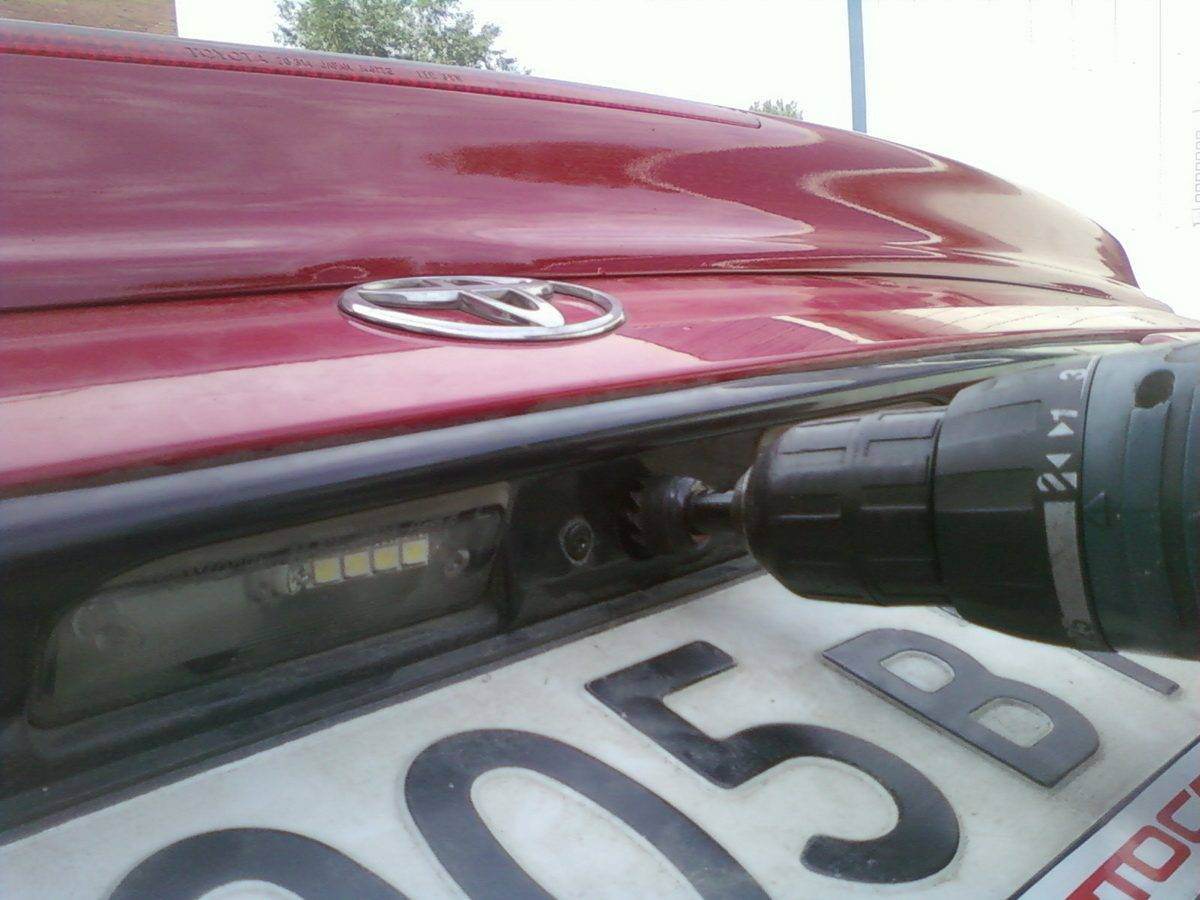 Комментарий к файлу: Всё как обычно, сверлим отверстие коронкой которая идёт в комплекте с камерой, обязательно под углом при котором камера захватывает максимальный участок возле машины. Всё это делается не снимая планки с плафонами. После того как отверстие готово, ослабляем планку и оттянув обрабатываем ватной палочкой с родной красочкой или другими сподручными средствами. после прикручиваем на место.