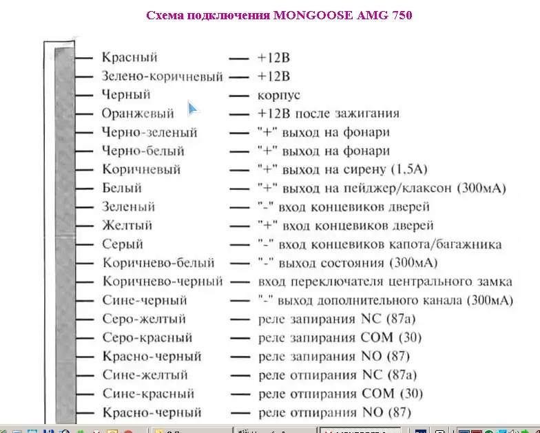 Извините,совсем забыл.Я снял фишку регулировки яркости когда искал сигналку.сигналка стоит MONGOOSE AMG 750/1.Там есть два толстых оранжевых провода(выход внутреннего реле блокировки),может эти два мозги парят? Вложение: