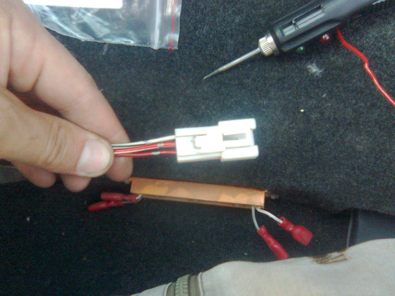 тестим кнопку (на заднем плане предохранители - благодаря самоотверженным усилиям которых все же была найдена правильная распиновка. Правда к их усилиям добавилось 4 по 0,5 пивка. Без них никак правильная распиновка не получалась  ) Вложение: