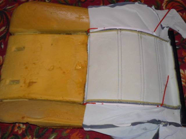 Устанавливаем нагреватели. Для этого, открутив 4 болта, снимаем водительское кресло и несем его домой. Снимаем спинку и седло. Для меня эта процедура уже обыденная, так как я летом постирал весь салон от 20-летней грязи, и я не стал иллюстрировать это, хотя приколов много. Чтобы снять барашки и рычажек на спинке надо отверткой отковырять стопорную пружинку, это не сложно. Задираем обивку кресла на обеих частях примерно таким образом: Вложение: