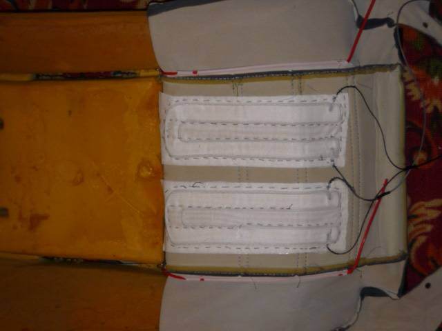 Приклеиваем, а прижелании пришиваем нагреватели к внутренней стороне обивки, так чтобы нитки не выходили наружу. Вложение: