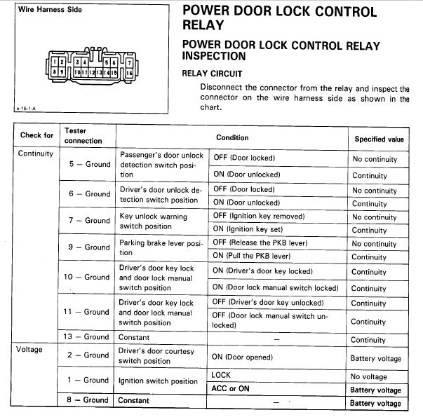ALEX-72 писал(а): вот еще в англоязычном мануале нашел: Вложение: РЕЛЕ.jpg Залез еще раз) некоторых коннекторов и проводов нет, которые есть на вашем скрине. В частности нет контакта №1, второй контакт работает в обратной последовательности, когда дверь открыта, 12 вольт пропадает на нем. Контакт № 7 обрезал совсем, вставил реле, ничего не изменилось, работает как и прежде. Не знаю куда копать, в саму кнопку в водительской двери, реле купил нерабочее? На данный момент, с покупки машины, ЦЗ управляется через контакты 3 и 4. На них сигналка подает плюс, двери открывают и закрываются. Все это работает без реле. Кнопка на водительской двери при этом не работает никак. На время тестов сигналку отключаю, вся проводка восстановлена. Визуально все жгуты идущие к реле ЦЗ целые, под личинкой замка зажигания тоже все целое. В водительской двери тоже все проверено, все целое. Как бы относительно все устраивает, но хотелось бы восстановить заводскую работы ЦЗ, кнопки и правильно подключить сигналку. Может еще какие советы будут? Спасибо.
