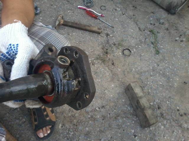 8. Снимаем большое стопорное кольцо (оно между флянцем и подшипником)