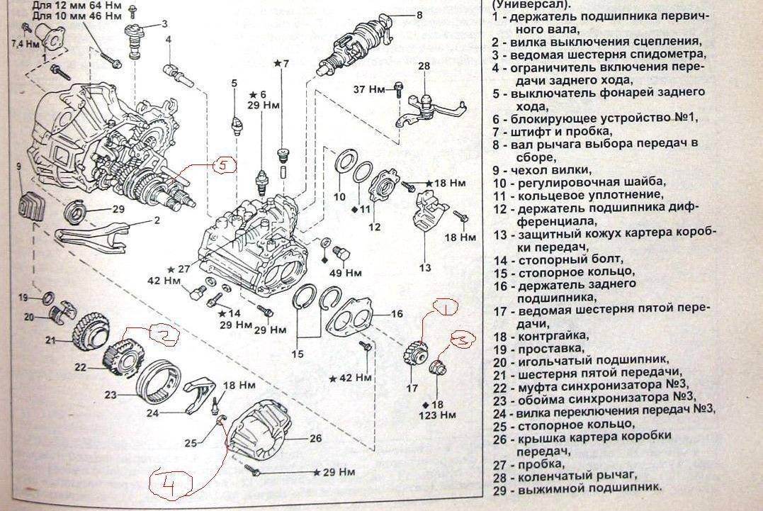 Сдохла МКПП (двиг 7АFE - кор. C50или С52)- судя по тому что концевик вторичного вала болтается влево вправо развалился задний подшипник вторичного вала (5 на схемах). Коробку снял но даже разобрать не получается - нет ни документации(из доков тока общие картинки внутренностей) ни опыта , спецов перебрать не нашел пока. У кого есть доки или добрый совет.