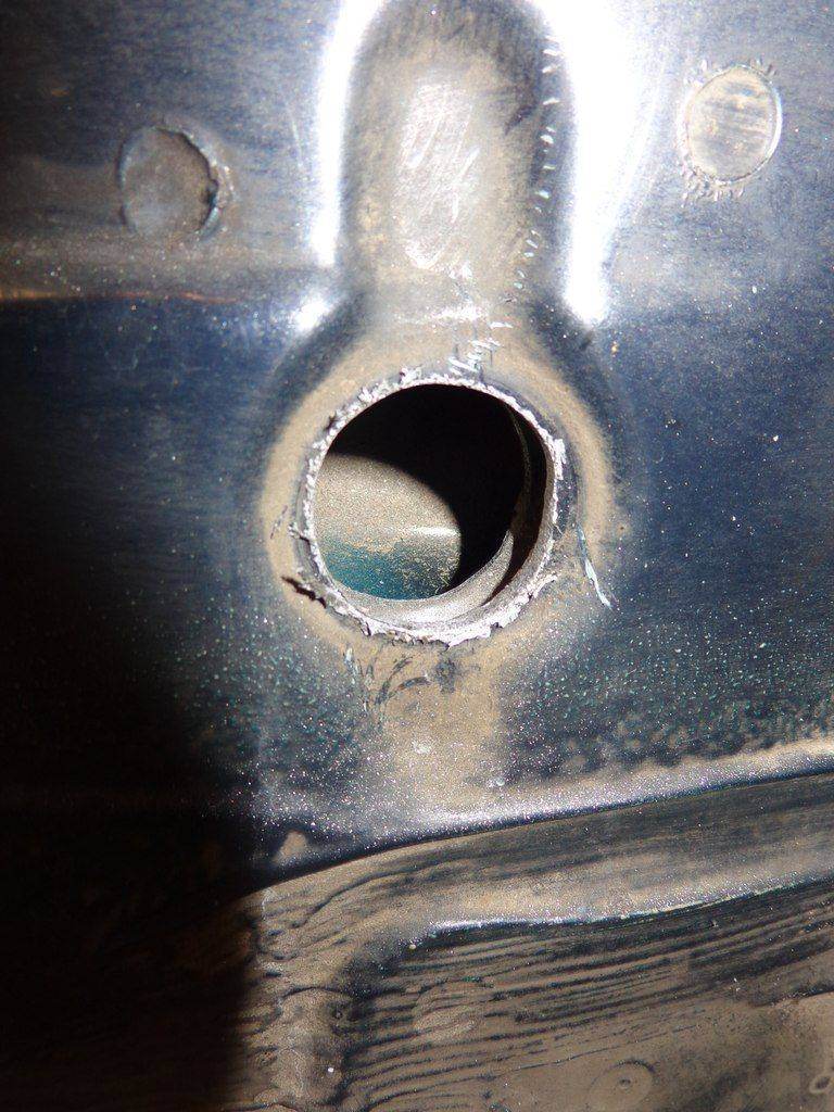 Далее фоты отсутствуют,фотограф за пивом ушел  ,но вкратце: отверстия расширили чтобы завести внутрь лонжерона гайку приваренную к прямоугольной пластинке,рядом с отверстием для закладной гайки сверлится еще пара чтобы через них прихватить пластинку к лонжерону. Кому надо,поймет  Было: Вложение: