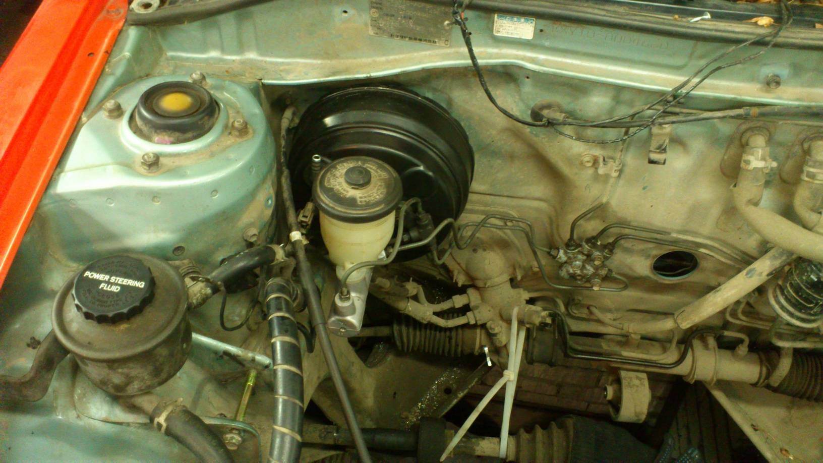 Передние тормоза от Калдыны 215,двухпоршневые,задние дисковые от Селики 241,вакуумный усилитель и ГТЦ от Карины Е Мотор на месте,ждет проводки Вложение: