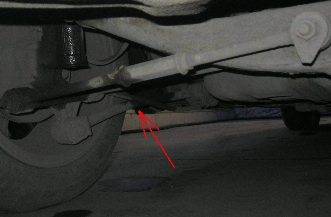 Вот и фотка гнутой тяги. как видно, согнута она прилично и видно это даже не приглядываясь -) Кстати, судя по фотке - течет стойка амортизатора??? хотя и не стучит пока вроде.