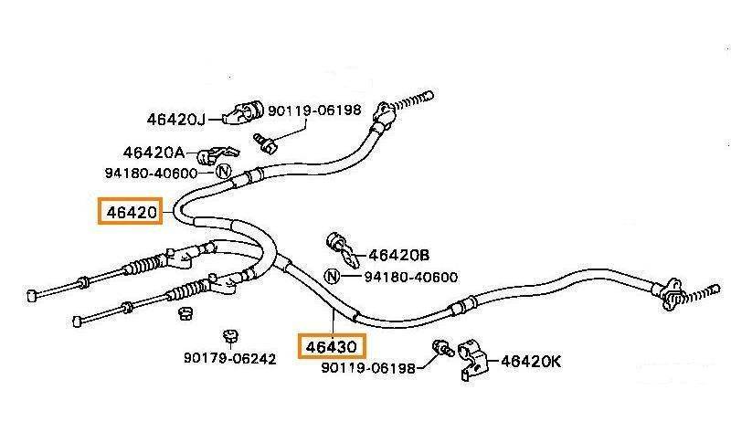 Вот собственно в чём проблема. Походу подзаржавели парные тросы ручника, из-за чего колодки клинит. Хочу заказать оба тросика сразу. Но на джапанкатсовском рисунке эти тросики обозначены разными номерами, тмпа правый - левый. А на самом деле они чем-нибудь отличаются?