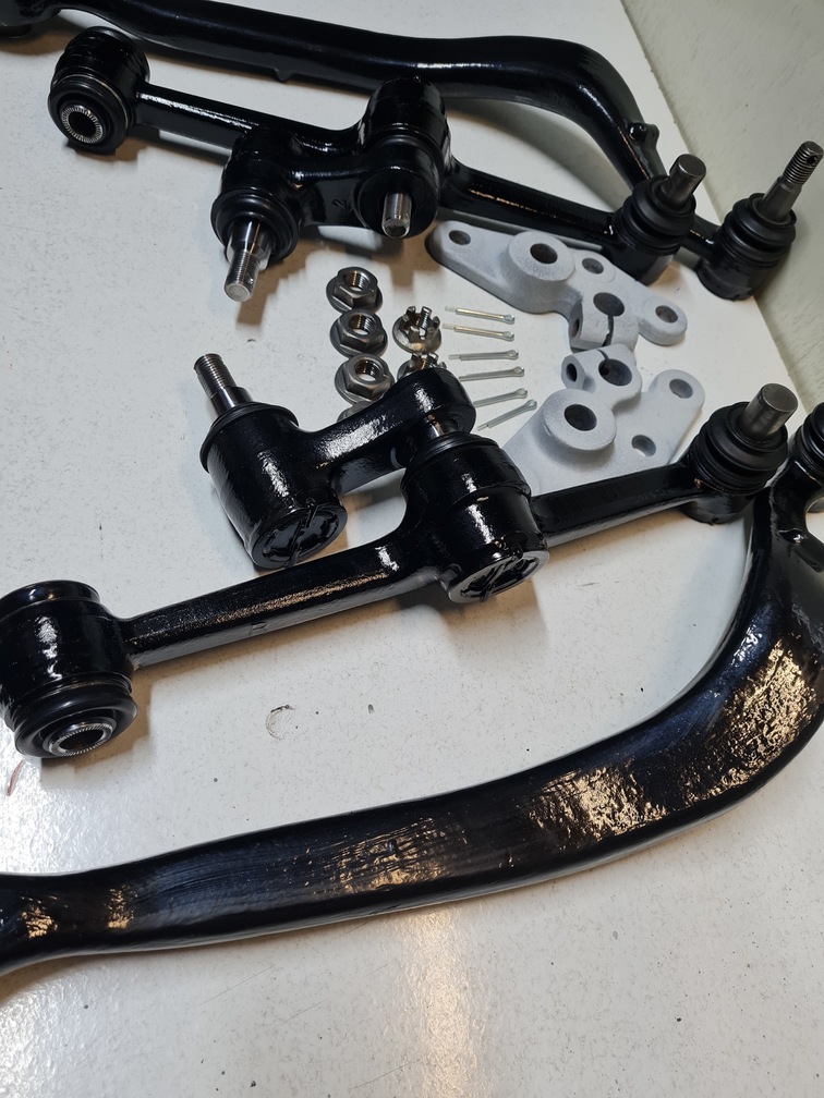 Ребята привет!  Отправил посылку с рычагами в Уфу. Заказчик Сергей Тараненко Что восстановлено: Передние стойки с пружинами, шаровые в передних стойках и само собой комплект рычагов Суперстрата. И все это покрашено в черный матовый. Автомобиль: Toyota corolla levin ae101