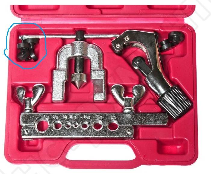 Вот прикупил китайскую развальцовку, с труборезом, типа такой: только нет пуансончиков для правильной формы вальцовки(обвел их), без них вроде должно получиться.