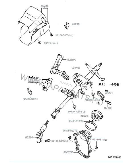 Zabik У тебя колонка не наклоняемая и уже английская, на твоей схеме их нет, вот номера которые я себе ставил, не факт что тебе подойдет Toyota 45865-12060 Втулка рулевого вала Toyota 45273-22020 Втулка рулевой колонки