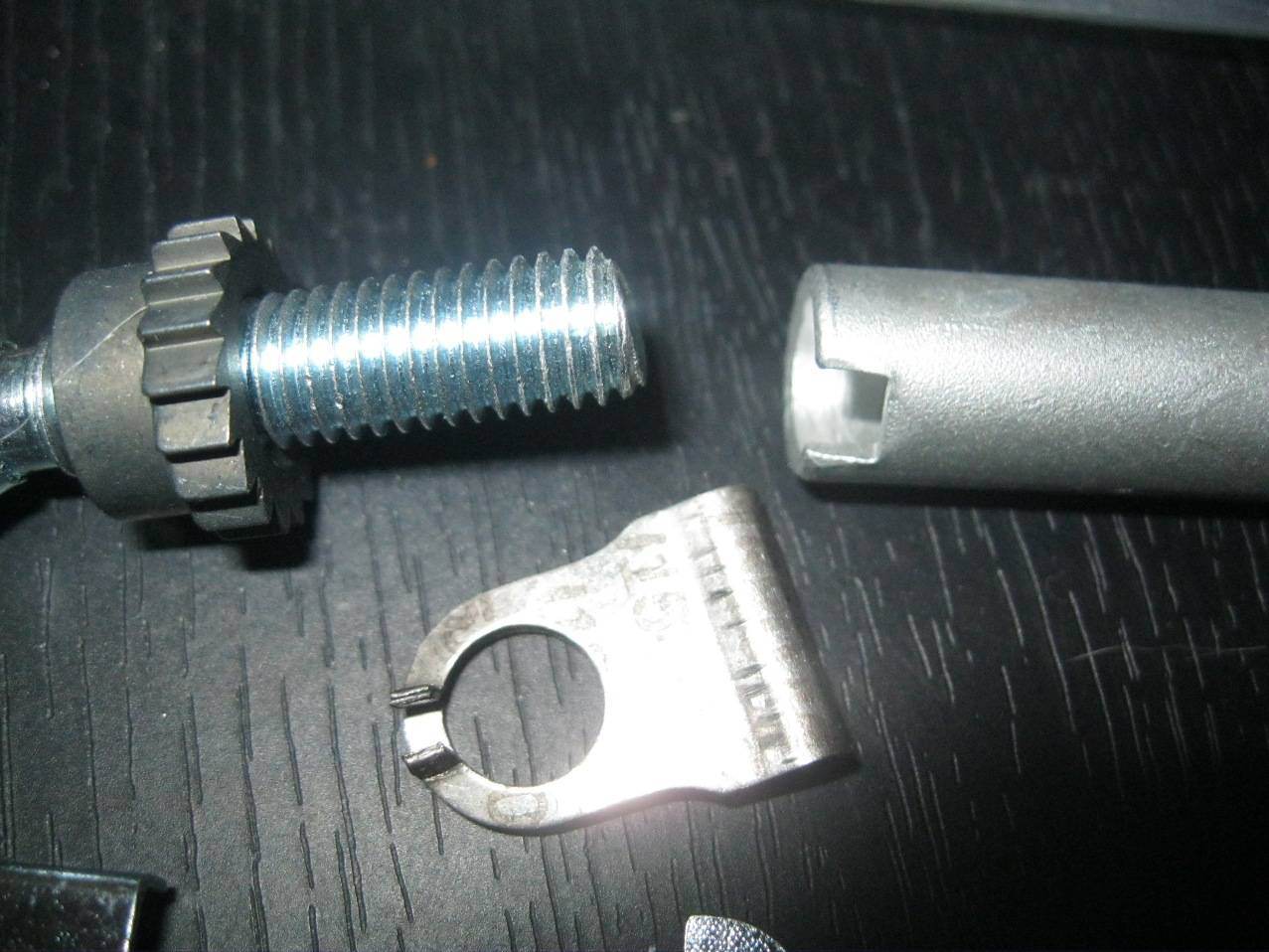 Кстати, по пункту 2, там никакой шайбы не должно быть. Пластина держится за счёт того что её с краю держит упор механизма автоподводки , переходящий в винт с резьбой, по которой крутится храповик...в который в свою очередь упирается трубка, другой стороной закреплённая на рычаге стояночного тормоза, как ты и написал.