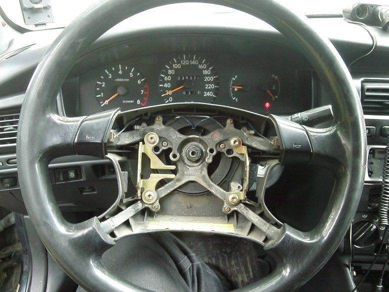 Ash писал(а): Aseigun писал(а): Но не смог снять руль, Руль прирос. При попытке (пробывал час, потом еще знакомый мастер - не справились).  Откручиваешь гайку держащую руль, берешь медную колотушку и молоток и начинаешь стучать по валу колонки, и коленками пытаться тянуть на себя руль. Ни в коем случае не руками  так тоже пытались. в результате еще и ось рулевую вниз сместили и пришлось назад выбивать, а то руль тугой стал. Добавлено спустя 3 минуты 12 секунд:вообщем запасной подрулевой блок у меня есть. нужен только целый руль, без подушки.