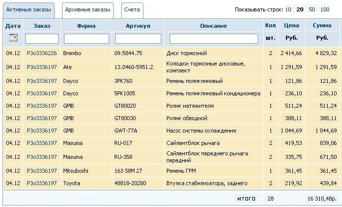 вроде всё, поправил шапку... к стати, по итоговым ценникам вышло: В сервисе (марки неизвестны) : 17 200р. По Экзисту (марки подобраны) : 6 836р.