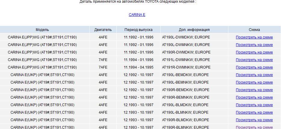 _________________ Тойота Авенсис Т-22,3S-FE,S54,DIS-2,седан,выпуск 07.2001,цвет 209,отделка LA 14-02,комплектация Sol. Была Карина Е,4а-фе,стд,1996 год.
