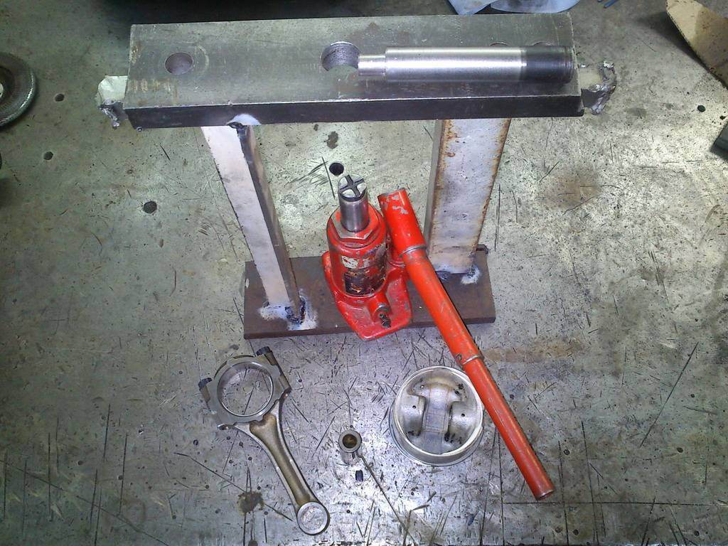 Раскидал сегодня один из комплектов поршень-шатун с помощью приблуды, сваренной за 15 минут из подручных материалов. Ещё за 5 минут токарь выточил оправку для выпрессовки пальца. Износ у пальца неравномерный - с одной стороны 4 сотки, и аж десятка с другой. Сегодня же пришли пальцы от Lifan. Geely брать не стал, судя по отзывам Серёги MerTV качество у них в последнее время хромает, а Лифан - контора как-то постарше, чем Джили. С другой стороны, не удивлюсь, если и на Lifan и на Geely пальцы идут от одного поставщика. Размеры полностью совпадают с Кариновскими.