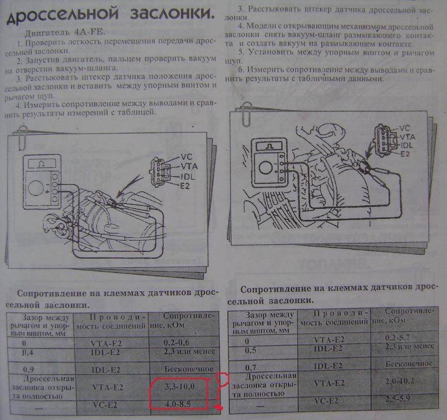 дядя писал(а): Я вот по этой книге делал.Ты не читай,что написанно у тебя,ты выстави показания как написанно вот здесь и будет всё ГУТ.  Решил почистить ДЗ и промерить на ней сопротивления. На КХХ показала 21 Ом на обоих контактах - норма. У ДПДЗ при полностью открытой заслонке показывает бесконечность, хотя по таблице должна быть проводимость. Регулировка не помогла, чтобы получилось как по таблице у меня не выходит. И еще заметил, что КХХ как-то закусывает, хотя вылизан весь как у кота причиндалы, а точнее не закусывает, а ощущение, что подшипник перебирает (развалился) - такое возможно?
