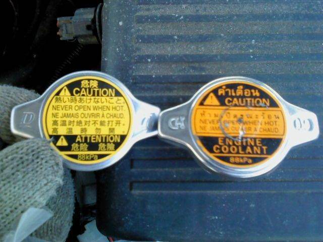 Я вчера купил новую оригинальную крышку радиатора. Посмотрю, что будет с ней. Старая "новая" сначала не стравливала давление в бачок совсем, из-за этого лопнул верхний патрубок, потом, после "модернизации", наоборот, перестала держать давление и при длительной езде на трассе (обороты выше 2,5 тык) антифриз выкидывало из бачка. Посмотрим, что будет с новой, тоже оригинальной. Внешне они очень похожи, но не совсем. Найдите десять отличий  Новая "новая" слева. Пришла в обычном п/э пакетике. Та что справа - в фирменной тойотовской коробочке
