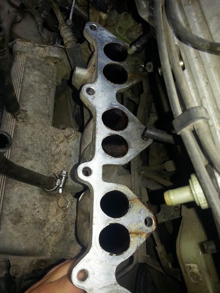 свои 5 копеек после проделанной процедуры: - я впускной полностью не снимал оставил его на шлангах, просто отодвинул, проще вытащить блок заслонок вместе с вакуумным клапаном, просто отсоединив фишку (обведено жёлтым) и один шланг - у меня был не свит, а подсос воздуха, прокладки металлические уже все потрескались краска слетела с них, думаю из-за этого (поставил всё новое по 350 руб одна прокладка  ) -сальники лучше всё таки брать без железного ободка, уж очень туго заходят, прямо запрессовывать пришлось -чтобы грязь не летела в отверстия, где стоят форсунки вставил кусочки шланга подходящего диаметра и всё почистил, карбклинер очень хорошо сдувает и очищает от грязи -при сборке проверьте язычок который толкает заслонки на фото обведено жёлтым, у меня он не до конца зажимал заслонки, был люфт, я его поджал и всё стало ок -грязи там оооочень много, заслонки очень плохо двигались из-за нагара -в итоге двигатель по ощущениям работает лучше, стала пободрее ( а может и кажется)))) - очень помогла маленькая трещётка с удлинителями, нижние болты труднодоступны - чтобы выкрутить старые 8 болтиков с заслонок, без лишнего геммора у меня получилось так: хорошей отвёрткой большой по пол оборота по многу раз делать туда сюда, т.е. как бы резьбу прочищаешь, и по-тихоньку полоборота добавляешь, в итоге только 1 болт докручивал плоскогубцами самый первый -когда болтики выкрутите зачистите маленьким напильником обратную сторону отверстия, у меня ось заслонок тяжело очень выходила, цеплялась за заусенцы (фото не сделал)