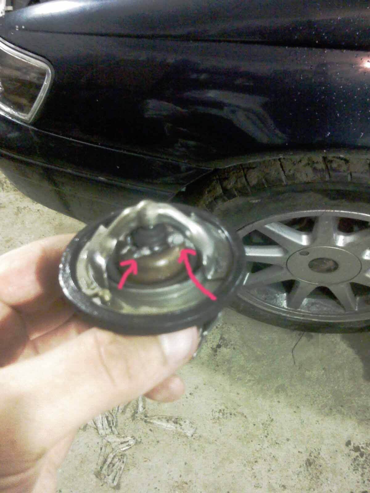 А термостат умер странной смертью.. каким то образом из него выдавило резинку и вследом весь парафин или чего там в нем находится.