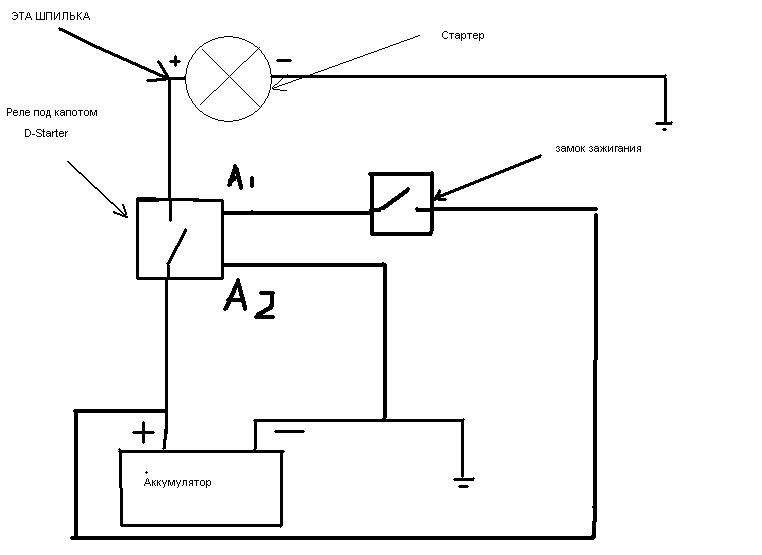 Beso писал(а): Lex@84 писал(а): хотел + подать в обход реле напрямую к этой шпильке ( чиркнуть) посмотреть работает или нет. Куда подать +? (см. фото) На шпильку "чиркать" не надо. На шпильку надо намертво прикручивать. "Чиркать" надо клеммочку в одноконтактном разъёме на втягивающем, куда как раз и приходит провод с проверенного тобой реле. Только вот странно нарисовано на картинке: "минус" должен быть один, на корпус. А "плюсов" - два: на силовую клемму под гайку и на управляющий контакт для включения втягивающего реле и запуска стартера.