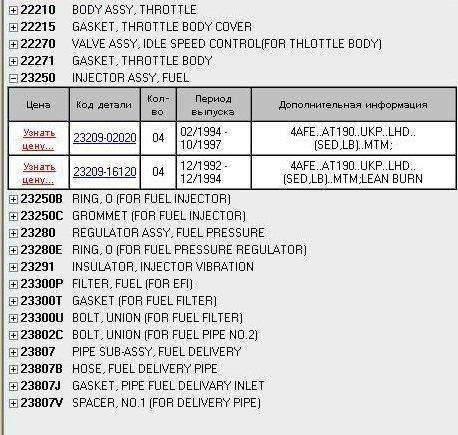 БелыйГусь писал(а): Пётр, если жапанкетс пишет про LB в сочетании с SED, то речь о седане и лифтбеке. По VIN коду каой номерок у форсунок? У меня 23250-02030.