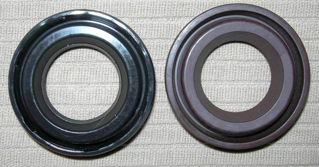 Раньше никогда не менял эти сальники, но по-моему они должны стоять вниз этими углублениями, тобишь плоской стороной к крышке?