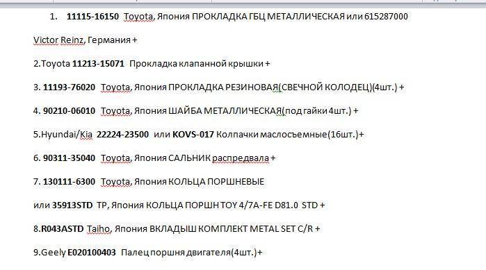 Сергей С@ныч писал(а): А здесь конечно не судьба была спросить? Зачем было спрашивать то? (номера запчастей я и так поиском по форуму находил, но потом не стал париться с самостоятельной закупкой запчастей (хоть у меня и vip на экзисте) затем ожидать их прихода) Как бы Вы например определили какие кольца заказывать? Вот и принято было решение заказать все оригинал у них. Мне младший брат шутканул - предложил только сцепление у него на работе (тойота серебряный бор) за 30 тыров махнуть. Сергей С@ныч писал(а): ( Короче,вас богатых хрен поймёшь.  10-15 косарей можно было сэкономить.  ЗП у меня 20 тыров в месяц, 23 косаря за "выздоровление движка" я считаю эт по божески. Сомневаюсь, что 10-15 косарей можно было бы сэкономить если брать оригинал.