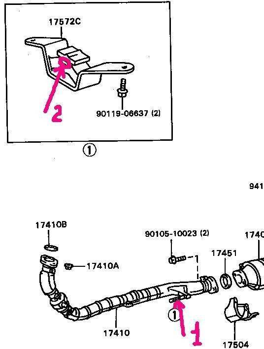 IVANUSHKA писал(а): Уважаемые форумцы, сегодня отремонтировал глушак. Движок у меня 3s-fe Проблема очень похажа на ту, что описана в теме Hronick http://carina-e.ru/viewtopic.php?t=910&highlight=%E3%EB%F3%F8%E8%F2%E5%EB%FCТ.е. у меня тоже секла секция между штанами и основной трубой, т.е. секция в которой установлен катализатор. Собственно вопросы: - замазал уплотнительные кольца красным герметиком (обычно его для двигателей используют) - через сколько он выгорит? Чем там вообще по правильному надо замазывать? Не выход, сечь начнет почти сразу, я тоже замазал, проехал километр и герметик отлетел. IVANUSHKA писал(а): - Дырка была под кожухом из нержавейки. При снятии я его повредил и на место не ставил. Он там вообще очень нужно? Можно катать без него? Кожух нужно выбросить и забыть про него, мне так на сервисе сказали. IVANUSHKA писал(а): - как открутить болты которыми прикручены штаны к выпускному коллектору? В том месте тоже сечет, хочу поменять прокладку. Мне открутили только предварительно прогрев газовой горелкой. IVANUSHKA писал(а): - из трубе глушителя приварен кронтейн из которого торчит штырь (на рисунке синяя стрелка), у меня этого штыря нет. Там что должно быть? Болт? или просто штырь?