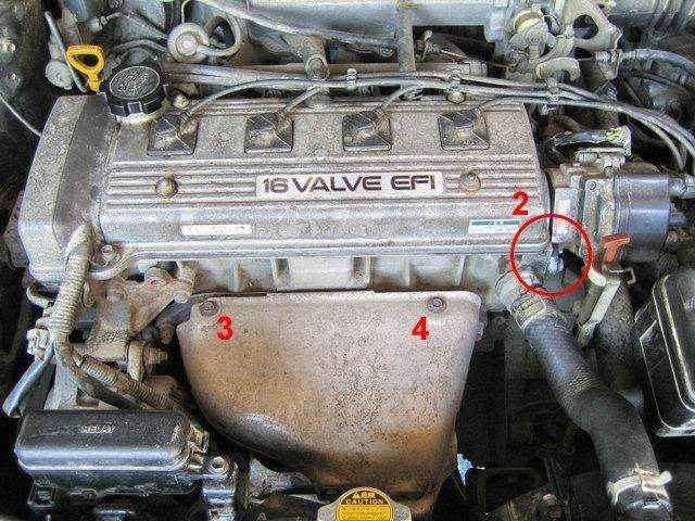 Мужики, подскажите! Какой это тип двигателя - 7A-FE? Проблемные места на фотографиях отмечены цифрами.