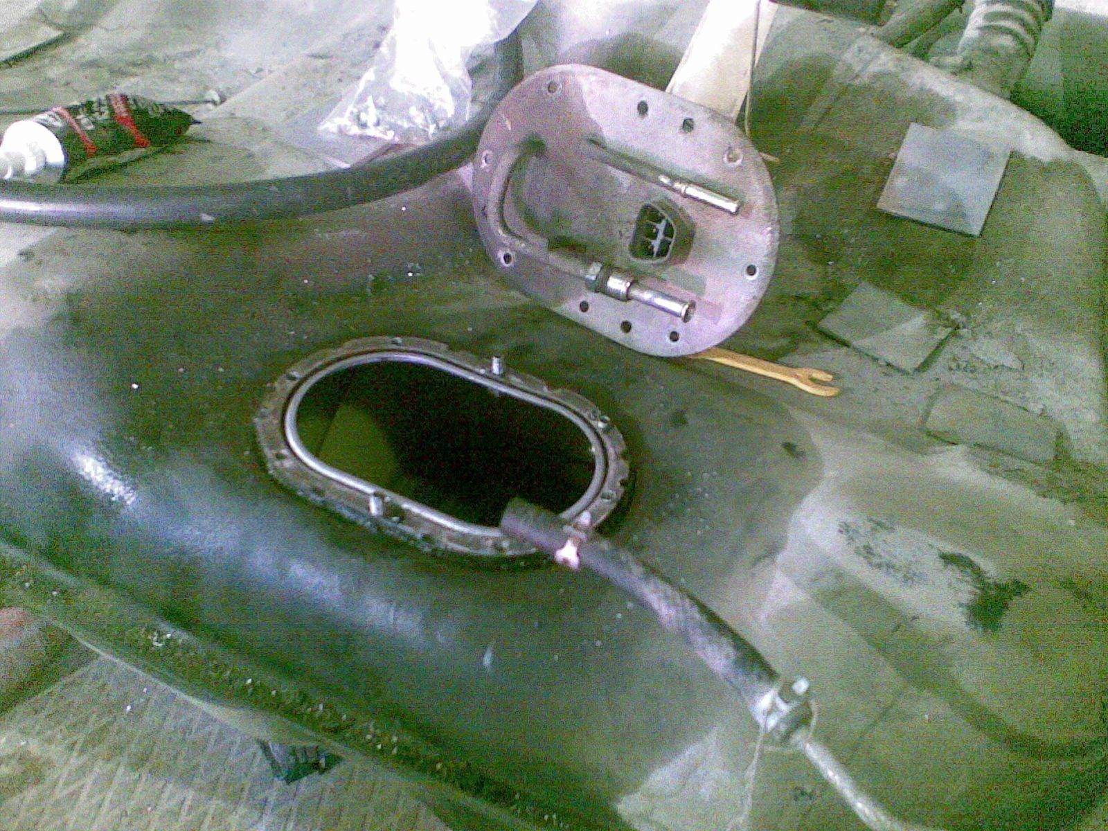 полез короче я менять фильтр в баке....снял заднее сиденье, снял крышку что под ним, открутил прубку подачи топлива, затем шланг обратки! разьем питания насоса, и осталось 8 винтов что крепят бензонасос. открутил первый....на втором сорвалась шляпка..!!! ххххммм. залил остальные WDшкой оставил это дело на сутки! на следующий день прихожу. срываю шляпки ещё на 4х.. итого у меня осталось всего 3 целых винта...  что делать??? как быть? решил высверлить..сверлом на 3 сделал отверстие в одном из сорванных вкрутил туда экстрактор. выкрутить не получилось...купил сверло на 5 полностью высверлил все отверстия. нарезал новую резьбу на 6. после этого вкручивал болты на 6 ,при этом обмазвыая их герметиком, вкручивал с внутренней стороны( видно на фото) потом немного рассверлил отверстия в самом модуле бензонасоса. установил на место насос и закрутил гайками...