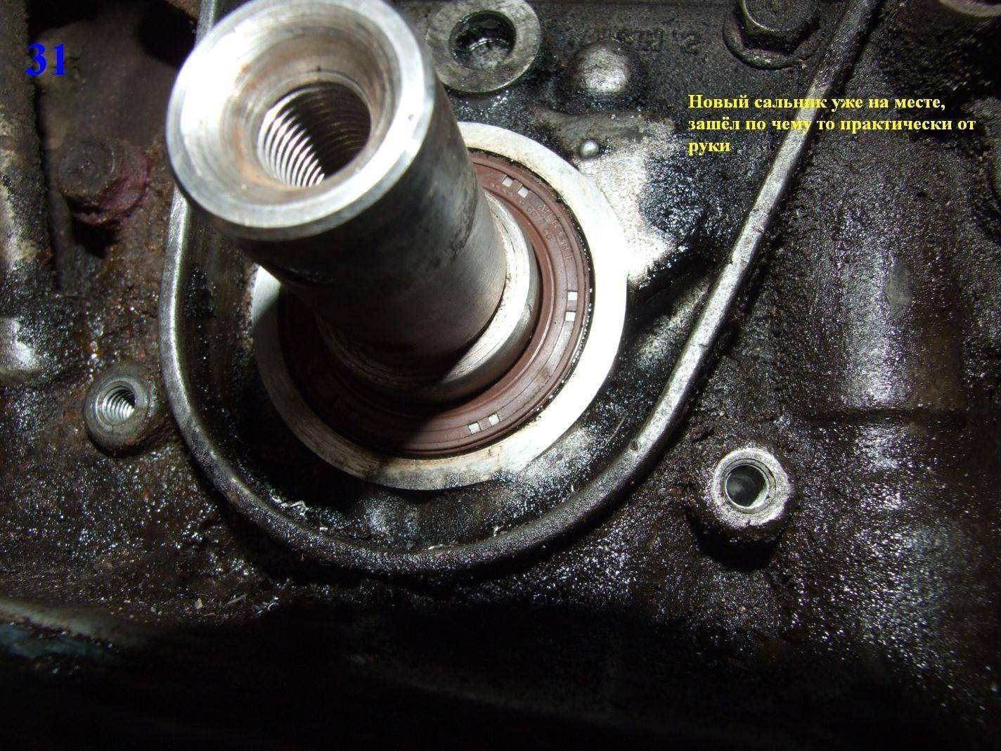 У меня тож, как потом оказалось не только сальник виноват был. Ни как не определю из под чего сочится. Буду поддон и крышку насоса снимать, вот тогда наверное уж наверняка известно будет. Хотя на фото видно в каком состоянии у меня сальник был. От замены до замены по разному, бывало грам 200-300, а когда и совсем не подливал.