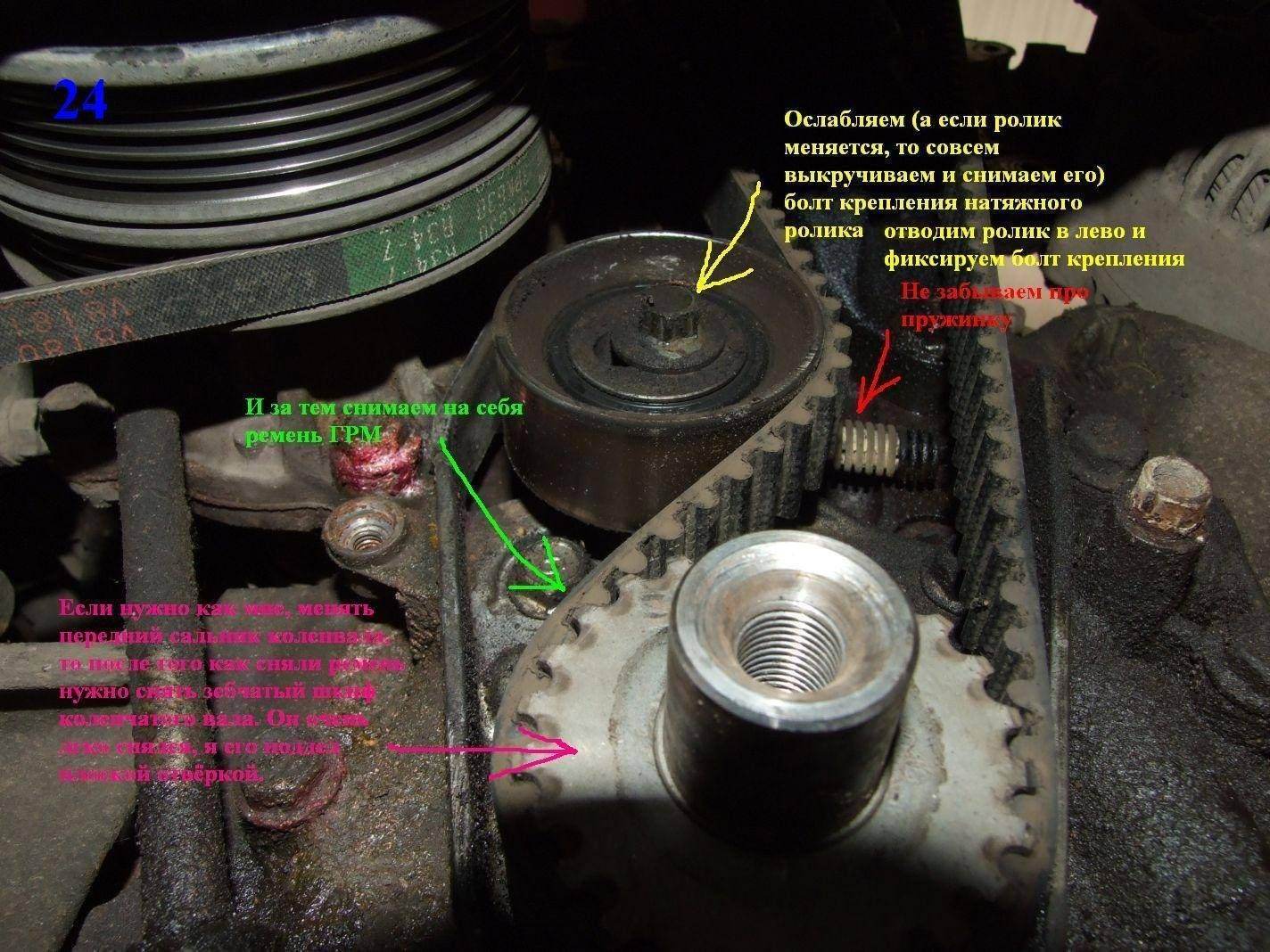 Парни, сегодня менял себе ремень ГРМ, ролик натяжной с пружинкой, передний сальник колен вала, ремень гены и сайлентблок передней опоры двигателя. Всё фоткал, если нужно могу выложить