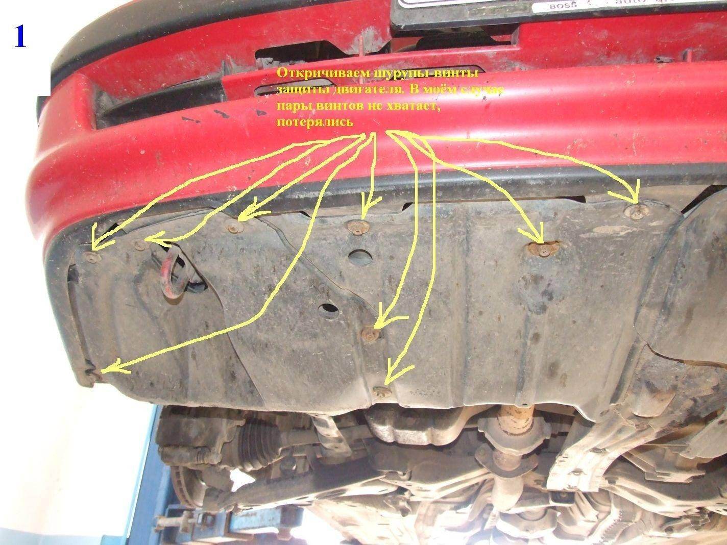 Сначала снимаем правое колесо, а за тем приступаем к защите двигателя