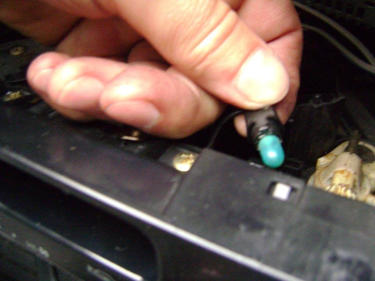 Вчера снял панельку на блоке управления печки (подсветка тож не работала). Обнаружил, что световод оплавлен в местах установки ламп. Причем оплавлен конкретно, справа аж насквозь прогорел. У меня вопрос по этому поводу: