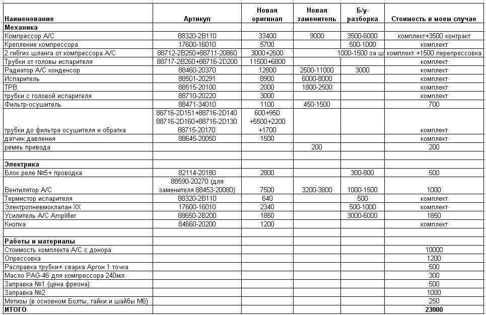 У меня Была такая история!Купил я машину свою .Магистраль подачи и обратки(трубки)дали в руки.Хозяин сказалЧто при не значительном ремонте двигателя передавили трубку ,сняли чтобы запаять.Целый год компрессор был в разгерметезированом состоянии,отверстия заткнуты бумагой.Вход и выход на испаритель тоже были заткнуты.Сколько я переездил фирм мне говорят,,Мы знаем эту машину ,,и отказывают.Все надежды пропали.