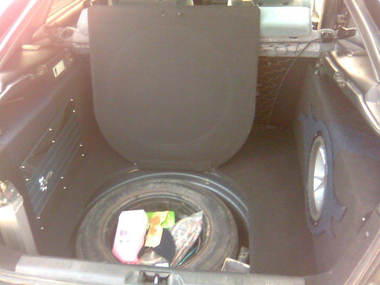 Сегодня переделал трубу фазика,раньше она сбоку короба была,то есть качала в стойку,сейчас в багажник качает,то есть с лицевой стороны короба рядом с динамиком,на предыдущей странице есть где то фота чернового варианта,то есть труба буквой г получилась,длину от балды взял,так как гнутые не знаю как просчитывать.Качает с трубы не хило,можно массаж спины устроить  ,правда под конкретный диск или радио надо каждый раз настраивать в магнитолле,долбанный формат мпз,почему то усел вырубать начало при большой громкости,пока не стал разбираться,странно,раньше все в ажуре было при любой громкости.Вот еще думаю вкрячить в передние двери по два динамика,охото с DLS что нибудь топовое,но стоит оно не хило  ,тогда можно будет и заднюю полку совсем убрать,там сейчас тоже колонки стоят,ну чтобы саб лучше слышно было