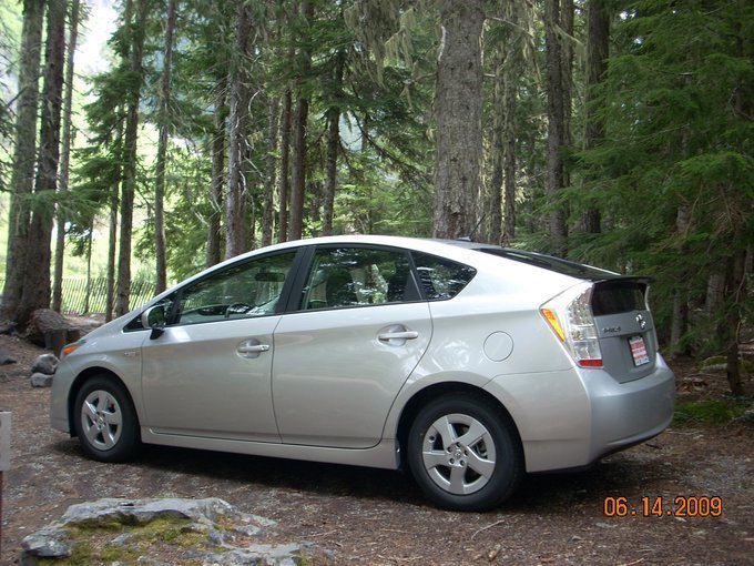 "Приветствую всех автолюбителей, особенно поклонников Тойоты. Отзыв будет о новом поколении Тойоты Приус 2010 модельного года, купленном для жены две недели назад. Маленькое отступление- так как живу в Америке более 10 лет, и ежидневный язык общения английский, прошу сделать скидку на любые орфографические, пунктуальные или стилистические ошибки, к тому же пишу на виртуальной клавиатуре- не очень удобно. Отзыв будет скорее обзорно-повествовательным, срок владения мал. Сподвигло написать два обзора на эту модель на сайте, и множество коментариев к ним. Написаны они обьективно, со всем согласен. Так как даная модель будет продаваться в Росии, возможно кому-то будет интересно. К делу. Меняем мы машины приблизительно раз в три года, за это время появляется что-то новое, своя приедается, гарантия заканчивается(остается на двигатель и трансмисию на 5лет или 70 тыс.миль) И пока машина все ещё хорошо держит цену и дилеры с удовольствием берут в трейд ин, самое время для перемен. Отдали мы Рав-4 2006 года, хороший автомобиль, очень легко управляется, за все время никаких ивестиций не потребовал, только бензин и замена масла. Почему именно Приус? Никогда об этой машине не мечтали, хотя второе поколение встречается на дорогах очень часто, особенно после прошлогодних цен на бензин. Крупнейший таксопарк Сиэтла перешел на них, несколько месяцев назад ехали с аэропорта, таксист на приусе, поговорил- нарадоваться не может- 160 тыс миль на одометре за 2,5 года все живое, расход после Форда Краун Виктории просто задаром. Ну, послушал и забыл. А тут новое поколение, а у меня друг работает тойотовским дилером, у него же и свой Toyota FJ Cruiser покупал, всегда самые лучшие варианты предлагает, может поэтому с тоет пересесть не могу, хотя не жалею, в первую очередь ценю надежность, решили посмотреть. По сравнению с предыдущем поколением реально прорыв. Машина стала красивой. Не то, что предыдущий был уродом, оригинальным и необычным- да, красивым- вряд ли. До этого владельцы Приуса воспринимались либо как борцы за экологию, либо те, для которых расход- важнейший критерий при выборе. Когда появилось второе поколение, сделал тест драйв, каких-либо эмоций не возникло, необычен, просторный салон, невнятная езда, да и при цене на бензин в то время дешевле двух долларов за галон покупка казалась не оправданой. С тех пор прошло пять лет, бензин около трёх, хорошо пока не 4,5 как год назад. Но самое главное, машина стала другой! Первое- приятно смотреть, салон ещё больше, на тест драйве посадил друга на переднее пасажирское, а он детина 1.98, я за ним, у меня 1.85- между коленями и его спинкой три пальца прошло. Багажник большой, спинки складываются в ровный пол 60/40, под полом поддон- 3-4 пакета с супермаркета легко помещаются, удобно. Под ним ещё запаска-докатка. Мотор 1,8 2ZR-FXE, 136 л.с плюс элекромотор с максимальной мощностью в 60 Квт, и максимальным крутящим моментом в 203 Нм. Вариатор с семью фиксированными передачами. Работает все бесподобно, по динамике очень похож на мой бывший scion TC с мотором в 2,4 и 160 лошадей. Никогда не думал, что можно получить удовольствие от вождения Приуса. Подвеска цепкая, тормоза и замедление прогнозируемое. Заводися с кнопки, в брелке ключ на случай необходимости открыть дверь в ручную. На водительской двери датчик открытия( закрытия) можно брелок не доставать. Но открывает тол
