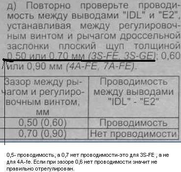 Palach писал(а): Цитата: при зазоре 06 ловил на мультиметре бесконечность и фиксировал винты дпдз я именно так и делал, заранее убедившись, что при 0,5 мультиметр показывает сопротивление вот фоточку посмотри, там в табличке для 4A-fe на против 0,6 - стоит надпись "проводимость"