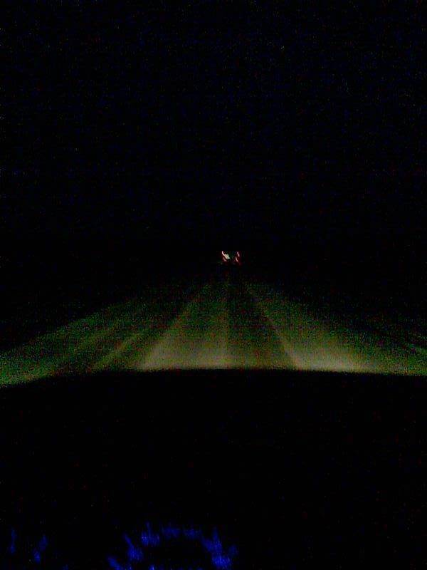 вот фото, правда на мобилу, качества никакого, светят супер  , у меня теперь что ближний с ПТФ, что дальний без них, одинаково. Мне очень нравится, и самое главное вовремя, меня в командировки посылают, еду по темному туда и обратно.