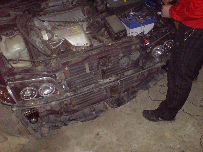можно и бампер снимать.... хотя я, для замены лампочки в ДЕ.. просто окручиваю болты вертикальной регулировки и вынимаю её..благо и провода достаточно...