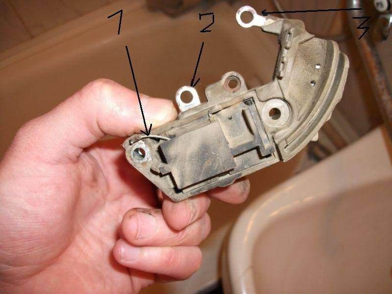 Lex@84 писал(а): Решил я все таки еще раз снять генератор и уж прозвонить все диоды А ты азартен, Парамоша! Lex@84 писал(а): прозвонил между собой все контакты под №3 (на генераторе), между собой в любом порядке они звонятся. "на генераторе" - я так понимаю, речь идёт о выводах статорной обмотки, оставшейся в корпусе после снятия всей навески? Между собой они и должны звониться, но при этом НЕ должны звониться на корпус. Lex@84 писал(а): под №6 диоды которые нужно прозвонить? Если я чутка лак зачищу сверху и прозвоню, Они, но чистить лак сверху не надо. Чистить при необходимости надо их выводы с другой стороны: на фото 250 точки под №2. Lex@84 писал(а): покрою ЛАКЦАПОНОМ  Вообще-то цапонлаком  Фоты "подковы" маловаты, всё в серый цвет сливается. Можешь выложить 1024Х768? Не могу разглядеть толком, как там пластины с диодами расположены, и как их правильно звонить. Вот, глянь кусок букваря, может, с подковой живьём разберёшься.