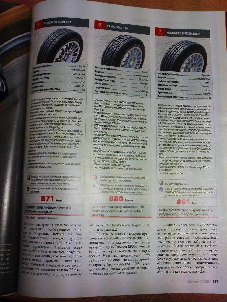 Наиболее критичны показатели устойчивости на грязной дороге (песочек), аквапланирование и износостойкость