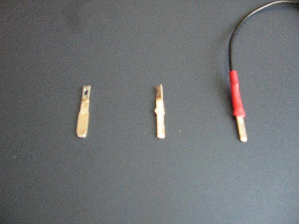 Комментарий к файлу: Слева направо: исходный контакт; доработанный напильником; с припаянным проводом и одетым кембриком