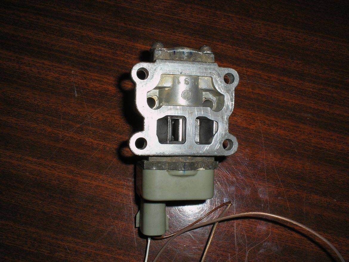 Ну можешь -же.... Всё наглядно видно...Я думаю всем видно что при комнатной температуре 20-25град ....клапан закрывается полностью и не может полностью открыться....Это подтверждается статьёй.... http://www.autodata.ru/autodata.ru/dtc_33.pdf Следовательно все рассуждения о биметалле - не дающем заглохнуть двигателю-заблуждение..Функция другая- ограничение максимальных оборотов -чем горячее ож - тем меньше возможные обороты(это нужно ещё проверить).... Видно и что другое заблуждение- сила электромагнита .... Биметалл спокойно противодействует шторке при подаче сигнала 12 В на открывание и не даёт открыться - следовательно и при работе в импульсном режиме (регулирование) это будет и подавно.... Да, из статьи видно что биметалл вообще не должен мешать работе электронной системы регулирования, при наличии упора(грязь) электроника вышла из строя....