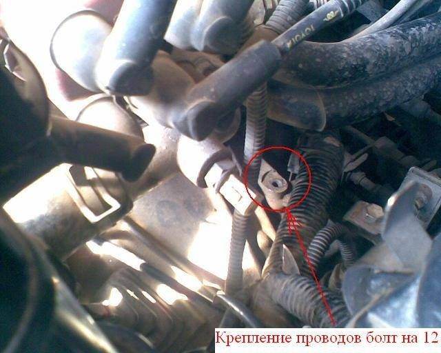 2. открутить от коробки ключом на 12 хомут крепления проводов идущих от блока предохранителя что бы добраться до верхнего болта стартера (если кому не мешает, можете не откручивать).