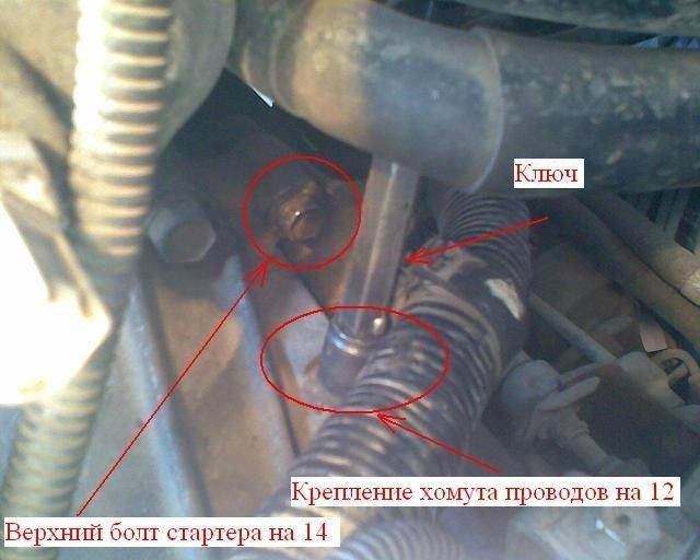 Комментарий к файлу: верхний болт стартера и крепление хомута
