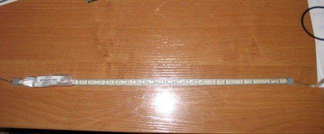 Думаю для многих штатная лампочка подсветки багажника дает недостаточно света. Вот и мне надоело лазать в темный багажник. В связи с этим, зашел в магазин радиодеталей и купил китайский "полуфабрикат" - светодиодную полосу на алюминиевой основе, с припаяными разъемами и метр провода. Цена вопроса ~480р.