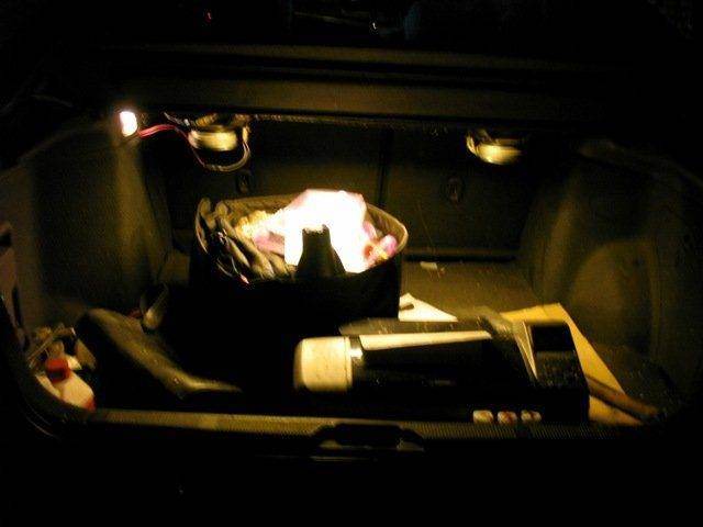 Поскольку на вагоне у меня полка мягкая и по бокам щели я запрятал 12 трех кристальных диодов в стандартный плафон багажника освещение тож бомба . :roll: