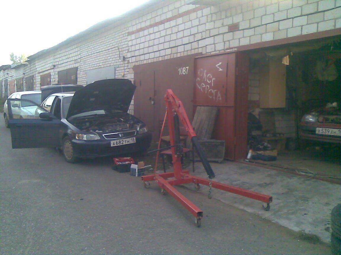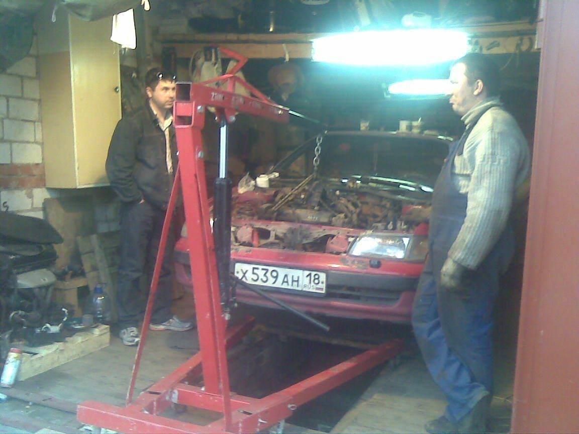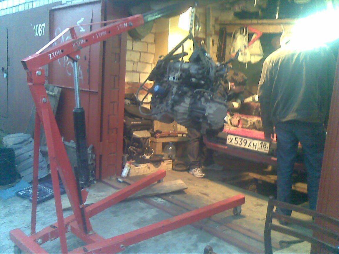 На фото запечатлен еще один участник этого мероприятия (в профиль правда) это Ильюха на GTI он сильно помог как в установке сигнализации так и в снятии движки, по началу мы планировали без коробки снимать, угорели бы ))))